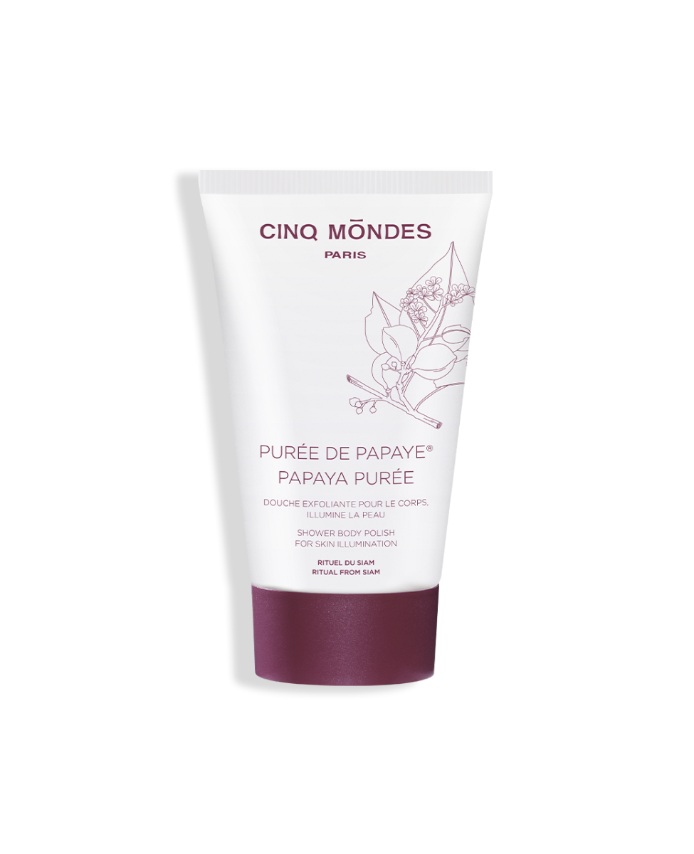 La purea di papaya è l'adattamento di una ricetta di bellezza, tradizionalmente utilizzata fin dal XVI secolo nel Regno del Siam per restituire luminosità e morbidezza alla pelle del corpo. Grazie ai suoi estratti naturali di Papaya ricca di Papaina, polvere di Cocco, Terra Diatomacea e olio di Kemiri, questa doccia esfoliante deterge e purifica delicatamente la pelle.