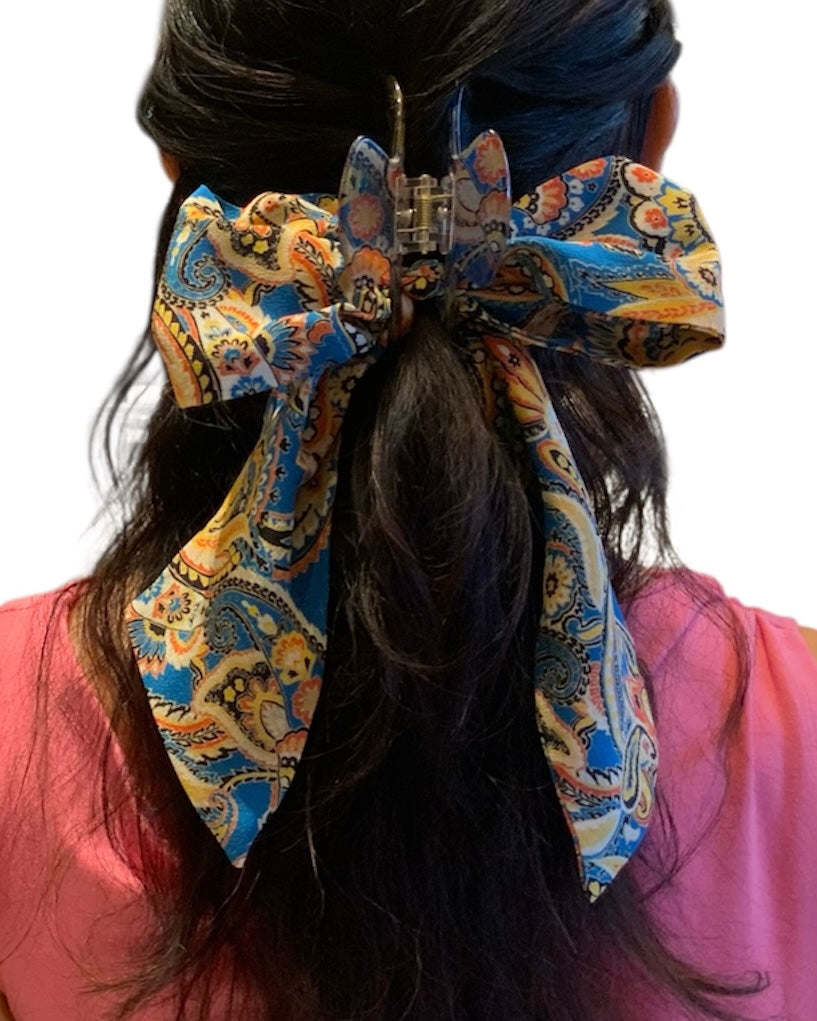 Pinza per capelli in seta vetrificata e fiocco in pura seta